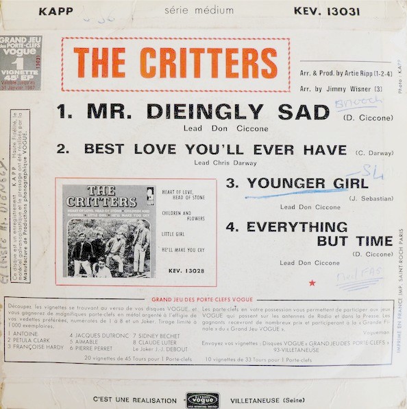 Voici le EP contenant les deux succès des CRITTERS.